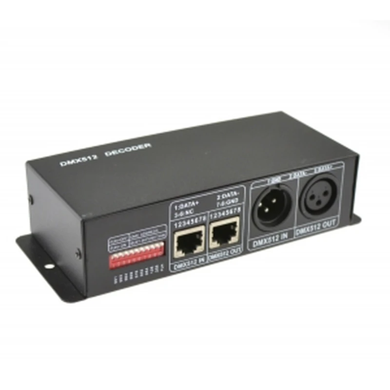 Yhteensopiva RGB LED-nauhojen ja LED-valojen kanssa, jotka toimivat 12V- tai 24V DC -jännitteellä. Se liitetään helposti standardeihin DMX512-ohjauspöytiin edistyneempää valaistuksen hallintaa varten.