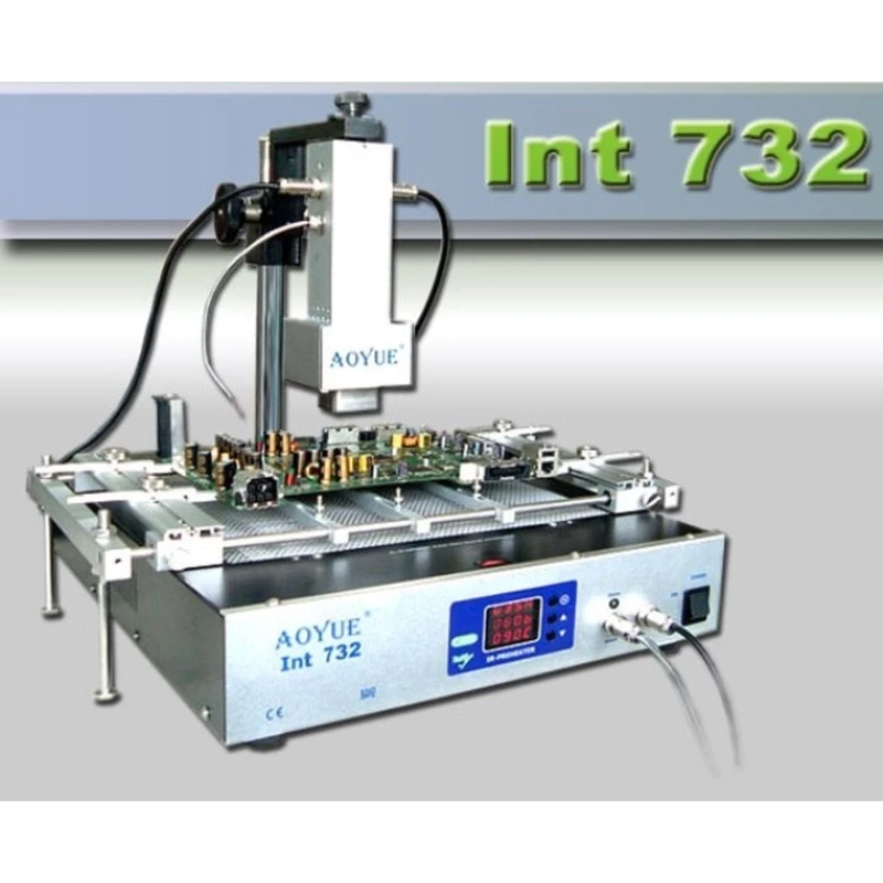 Aoyue INT732 juotosasema on edistynyt juotosasema, joka yhdistää kolme olennaista toimintoa yhteen laitteeseen: kuumailmajuotos, juotin ja esilämmitin. Tarkkuutta ja tehokkuutta varten suunniteltu järjestelmä käyttää infrapuna-aaltoihin perustuvaa lämmitystekniikkaa perinteisen kuuman ilman sijaan, mikä vähentää lähellä olevien komponenttien siirtymistä juotosprosessin aikana.