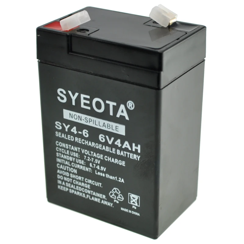 Ladattava 6V 4Ah lyijyakku SY4-6 hälyttimiin, vaakoihin ja leluihin